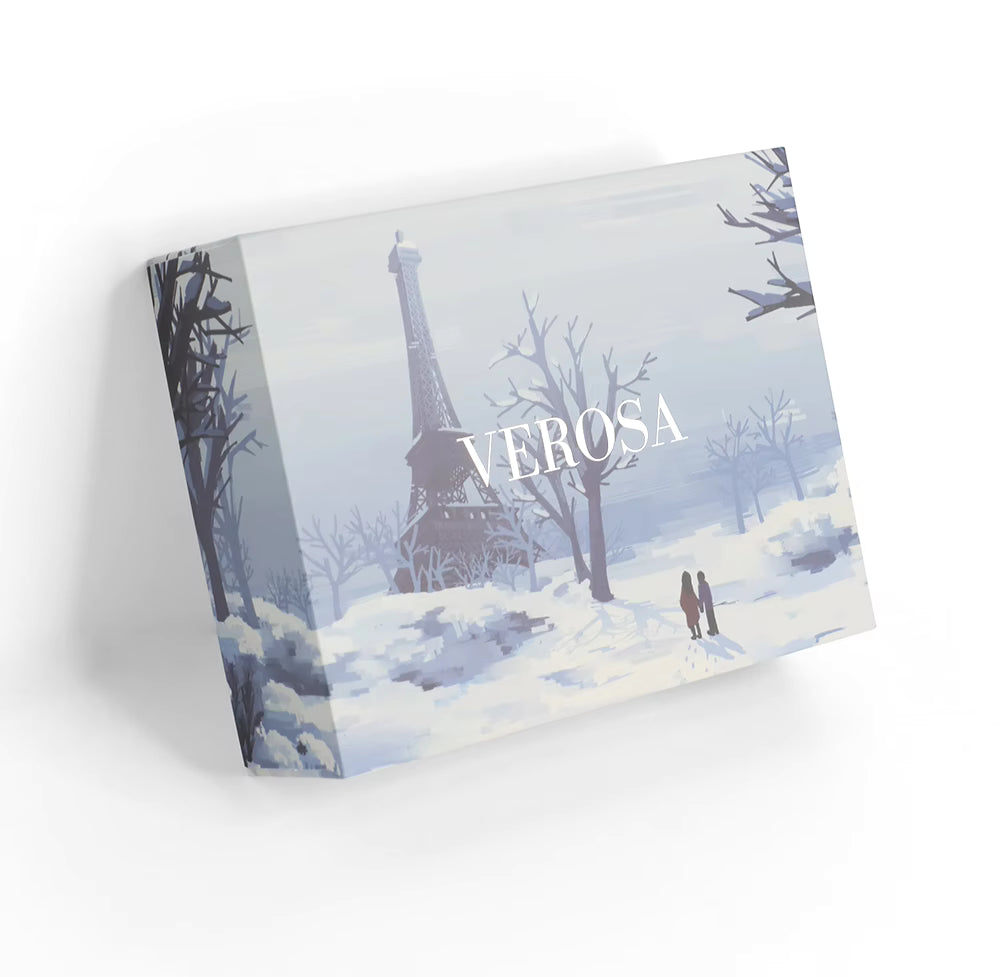 Crafted with the same attention to detail as our wallets, the "Winter in Paris" packaging features subtle artistic elements, sophisticated textures, and refined finishes, reflecting the quality and elegance of Verosa. It’s designed to complement our luxury wallets while providing an unforgettable presentation, perfect for collectors, travelers, and those who appreciate refined design.